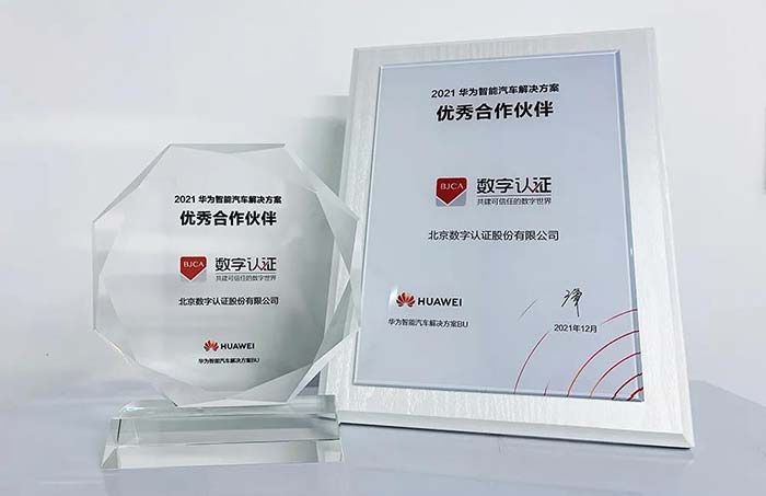 2021年12月21日,“2021华为智能汽车解决方案生态论坛”成功举办,大会回顾了华为与合作伙伴在智能汽车领域共同取得的丰硕成果。作为国内领先的网络安全解决方案提供商,北京数字认证股份有限公司(以下简称“数字认证”)凭借在车联网安全领域丰富的创新应用与实践经验,以及与华为的深度合作,被评选为“2021华为智能汽车解决方案优秀合作伙伴”。