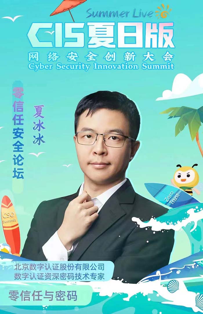 互联网的高速发展带来产业数字化转型的新浪潮,企业的IT架构也在发生着改变,随着企业IT架构正在向“无边界”转变,传统的安全边界已经无法满足企业的安全需求。尤其疫情之下,远程办公需求的激增更是成为很多黑客的突破口。为此,7月8日,作为已经连续举办七届,载誉满满的网络安全领域的行业盛宴,CIS 夏日版·Summer live以“安全生长,重启一夏”为主题开启线上直播,与顶尖专家学者共话安全,共谈零信任市场新格局。数字认证夏冰冰博士受邀出席并带来《零信任与密码》的主题演讲。