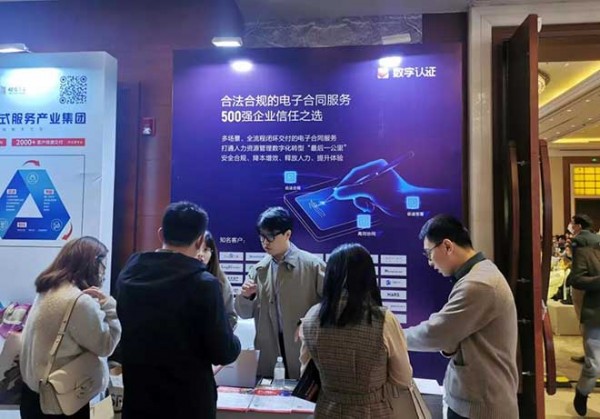 数字认证创新研发的电子签名因改变了传统线下纸质签署模式、帮助企业降本增效,成为现场一大亮点。以密码技术为核心,电子签名实现人力资源电子合同、离职证明、保密协议等电子化文档线上签署、线上盖章。此举免去了纸质凭证打印、邮寄、存储等成本,同时实现电子签署文档防篡改、防丢失、防伪造,安全又高效,不但大大释放了HR们陷于事务性工作中的精力,随时随地灵活签署的方式也极大提高了员工体验,是人资数字化创新的新方向。