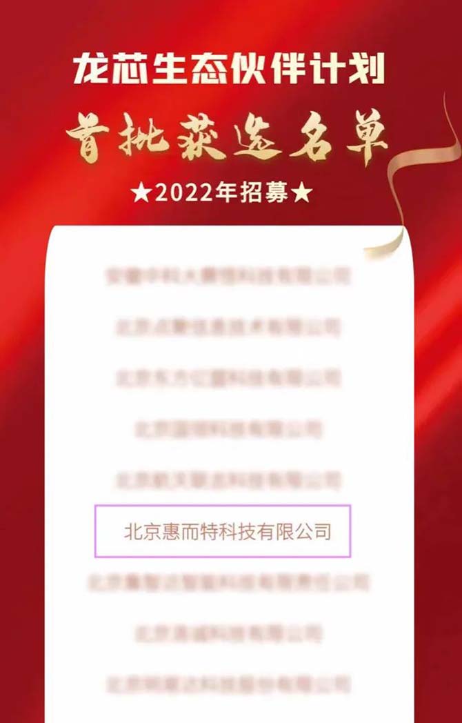 近日,龙芯中科正式发布了“龙芯生态伙伴计划”2022年首批获选名单,经过多轮的筛选、评审,北京惠而特科技有限公司凭借优质的产品项目和在网络安全领域的影响力成功入选。