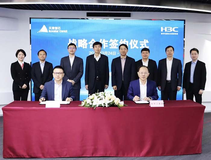 2022年3月24日下午,上海天数智芯半导体有限公司(以下简称“天数智芯”)与新华三技术有限公司(以下简称“新华三”)战略合作签约仪式在北京成功举行。天数智芯董事长兼首席执行官刁石京、紫光股份董事长兼新华三集团首席执行官于英涛等领导出席了本次签约仪式。