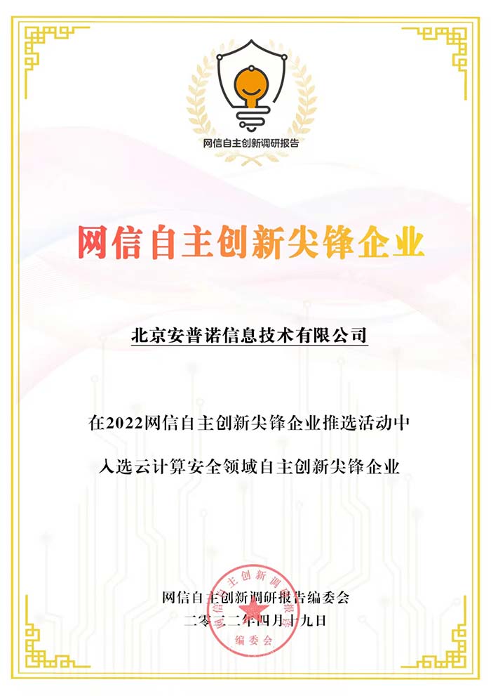 2022年4月19日,由网信自主创新调研报告编委会主办的“第五届关键信息基础设施自主安全创新论坛”在京顺利召开,会上正式发布了由悬镜安全在内的150多家企业历时近7个月编写完成的《2021网信自主创新调研报告》(以下简称《报告》)。同时,主办方还公布了一批具有突出创新能力、取得显著创新成果、能够代表创新水平的“网信自主创新尖锋企业”。悬镜安全凭借原创专利级“代码疫苗技术”以及旗下云鲨RASP自适应威胁免疫平台,获评“云计算安全领域”自主创新尖锋企业。